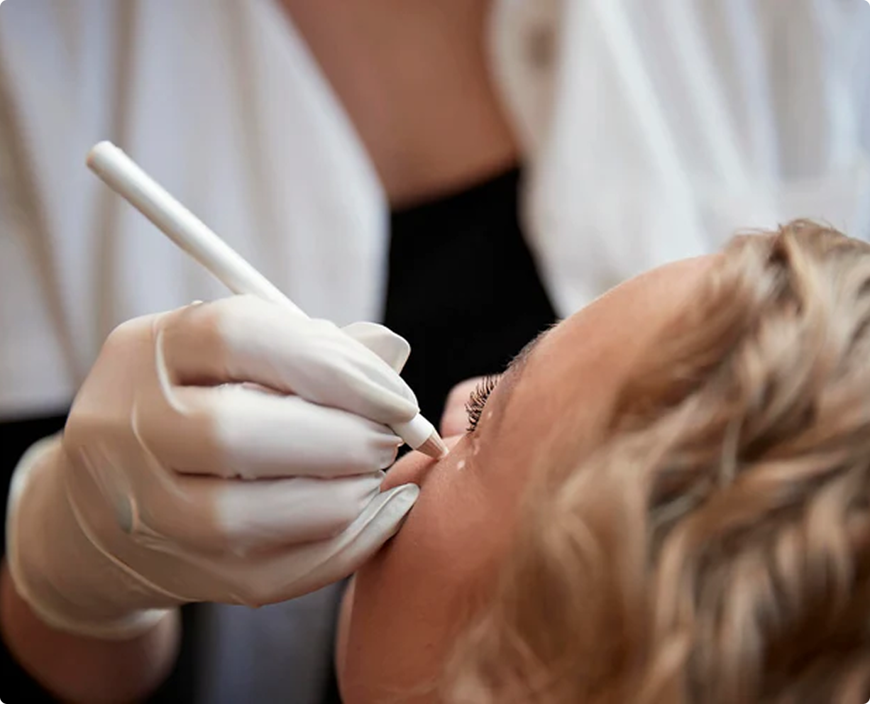 En behandling med Skinkò E kan laves både i øjenområdet, underansigt, øvre ansigt og på hænderne.